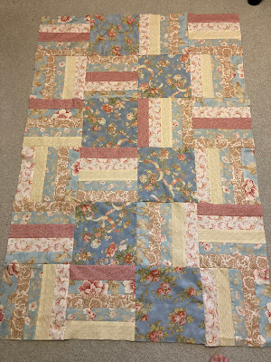 My daughter had started these blocks years ago, and never finished putting them together.It still needs the border, but I was able to find some fabric in my stash to make the alternate blocks.And this one was one I started but never sewed them together.